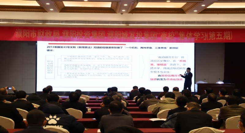 12月2日晚,濮陽市財政局聯(lián)合濮陽投資集團(tuán)、濮陽城發(fā)投集團(tuán)開展“夜校”集體學(xué)習(xí)(第五期)活動,本期集體學(xué)習(xí)特邀資深城投公司轉(zhuǎn)型專家、江蘇現(xiàn)代資產(chǎn)投資咨詢集團(tuán)高級顧問、現(xiàn)代研究院副院長、《城投藍(lán)皮書》副主編李啟春先生擔(dān)任講師。濮陽市財政局黨組書記、局長,濮陽投資集團(tuán)黨委書記、董事長潘順恩主持活動并講話。