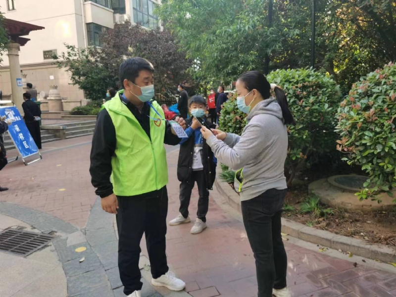 城發(fā)工程管理有限公司員工石雷超,收到下沉社區(qū)的通知后,第一時間到頤南社區(qū)報到成為了一名志愿者,按照社區(qū)安排,在核酸檢測現場指引居民掃碼、檢測等工作。同時,作為馬頰河清淤疏浚項目現場負責人,每天服務完社區(qū)核酸檢測工作后就趕到項目現場督導清淤工程疫情防控及工程進度建設。