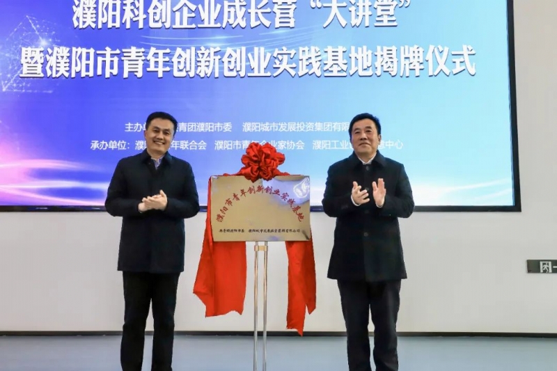 團(tuán)市委副書記閆兆敏、濮陽(yáng)城發(fā)投集團(tuán)總經(jīng)理閆進(jìn)軒為濮陽(yáng)市青年創(chuàng)新創(chuàng)業(yè)實(shí)踐基地揭牌。