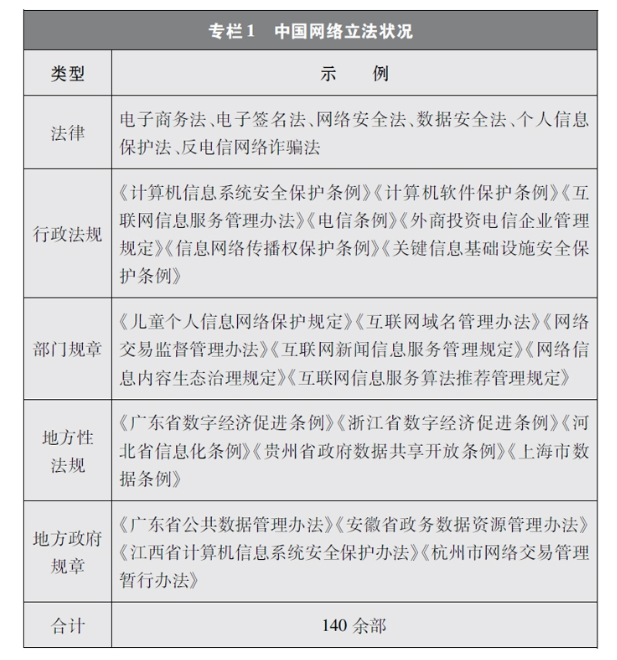 中國網(wǎng)絡(luò)立法隨著互聯(lián)網(wǎng)發(fā)展經(jīng)歷了從無到有、從少到多、由點(diǎn)到面、由面到體的發(fā)展過程。第 一階段從1994年至1999年,是接入互聯(lián)網(wǎng)階段。上網(wǎng)用戶和設(shè)備數(shù)量穩(wěn)步增加。這一階段網(wǎng)絡(luò)立法主要聚焦于網(wǎng)絡(luò)基礎(chǔ)設(shè)施安全,即計算機(jī)系統(tǒng)安全和聯(lián)網(wǎng)安全。第二階段從2000年至2011年,是PC互聯(lián)網(wǎng)階段。隨著計算機(jī)數(shù)量逐步增加、上網(wǎng)資費(fèi)逐步降低,用戶上網(wǎng)日益普遍,網(wǎng)絡(luò)信息服務(wù)迅猛發(fā)展。這一階段網(wǎng)絡(luò)立法轉(zhuǎn)向側(cè)重網(wǎng)絡(luò)服務(wù)管理和內(nèi)容管理。第三階段從2012年至今,是移動互聯(lián)網(wǎng)階段。這一階段網(wǎng)絡(luò)立法逐步趨向全面涵蓋網(wǎng)絡(luò)信息服務(wù)、信息化發(fā)展、網(wǎng)絡(luò)安全保護(hù)等在內(nèi)的網(wǎng)絡(luò)綜合治理。在這一進(jìn)程中,中國制定出臺網(wǎng)絡(luò)領(lǐng)域立法140余部,基本形成了以憲法為根本,以法律、行政法規(guī)、部門規(guī)章和地方性法規(guī)、地方政府規(guī)章為依托,以傳統(tǒng)立法為基礎(chǔ),以網(wǎng)絡(luò)內(nèi)容建設(shè)與管理、網(wǎng)絡(luò)安全和信息化等網(wǎng)絡(luò)專門立法為主干的網(wǎng)絡(luò)法律體系,為網(wǎng)絡(luò)強(qiáng)國建設(shè)提供了堅實的制度保障。