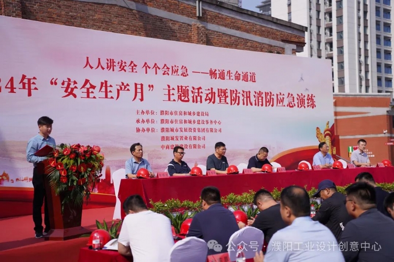 2024年6月15日上午,由濮陽住房和城鄉(xiāng)建設(shè)局主辦,濮陽住房和城鄉(xiāng)建設(shè)事務中心承辦,濮陽城市發(fā)展投資集團有限公司、濮陽城發(fā)置業(yè)有限公司、中商建投建設(shè)有限公司協(xié)辦的2024年“安全生產(chǎn)月” 暨防汛消防應急演練活動儀式在濮陽工業(yè)設(shè)計創(chuàng)意中心舉行,相關(guān)單位及施工人員200余人參加。