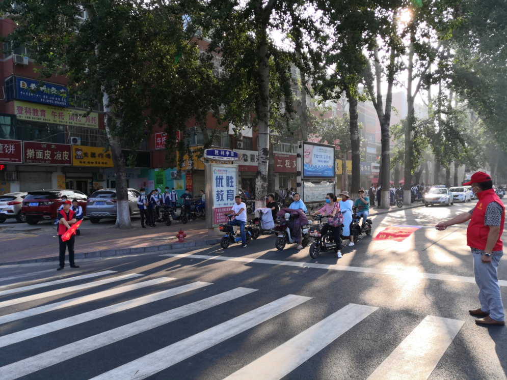 雖然天氣炎熱,志愿者們依然堅守崗位,認真開展"文明交通"勸導活動。身穿紅馬甲,手持指揮旗,志愿者每兩人一組整齊地站在斑馬線兩側(cè),積極勸導身邊的行人,不放過任何一種違反交通規(guī)則的行為,使得路口交通秩序井然有序。志愿者們在交通執(zhí)勤過程中,還不忘熱心幫助他人,攙扶老人、孩子、殘疾人過馬路,為問路人指明方向等等,受到過往行人的陣陣好評同時及時勸導行人不按信號燈通行、電動車逆行、不按道行駛等不文明行為,并呼吁廣大市民積極響應創(chuàng)建全國文明城市文明交通勸導活動,彰顯“全國文明單位”良好形象。
